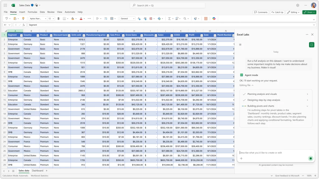 Agent Mode na voljo v Excelu in Wordu
