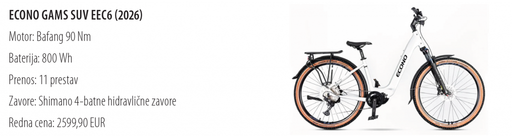 Če pogledamo celotno sliko, ECONO Gams SUV EEC6 v svojem razredu ne le konkurira, temveč v določenih segmentih konkurenco tudi presega, predvsem tam, kjer je za uporabnika najpomembneje: pri razmerju med ceno, zmogljivostjo in opremo. Več o kolesu lahko najdete na https://econo-bikes.com/ebike/gams. (P.R.)