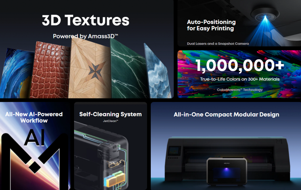 Podprti materiali so precej raznoliki: les, kovina, steklo, usnje, akril. Velikost tiskalne površine je okoli 33 x 42 centimetrov. Z dodatno rotacijsko enoto pa bo mogoče tiskati tudi na okrogle predmete, kot so skodelice ali steklenice za vodo.