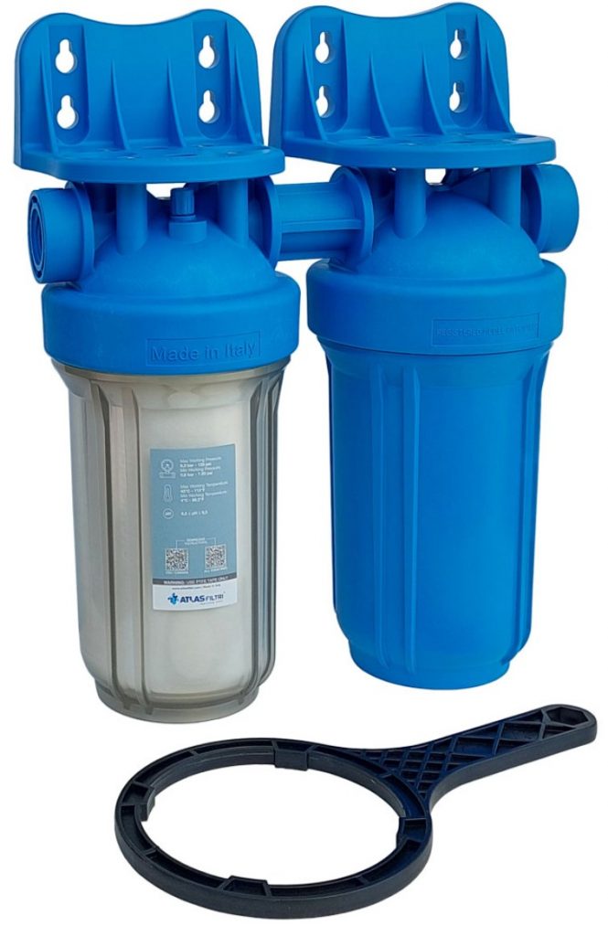Dvojni vodni filter Big Blue Duplex Pro Max je edinstven vodni filter za temeljito filtriranje vode celotnega objekta, stanovanjske hiše ali stanovanja. Montira se na glavni vod vode, namestitev je enostavna, vzdrževanje pa je minimalno.