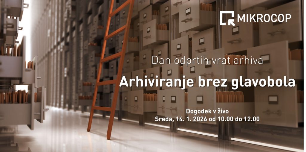 Neurejena dokumentacija, nepregledni fascikli, omejen prostor in nenadzorovani dostopi lahko močno otežijo vsakodnevno delo ter povečajo tveganja z vidika zakonske skladnosti. Na dogodku bo Miha Čebron, produktni vodja fizične hrambe, predstavil, kako lahko z ustrezno organizacijo in strokovnim pristopom vzpostavite učinkovit, pregleden in zakonsko skladen arhiv fizične dokumentacije. Prijava: https://www.mikrocop.si/dogodki/dogodek-v-zivo-dan-odprtih-vrat-arhiva-arhiviranje-brez-glavobola