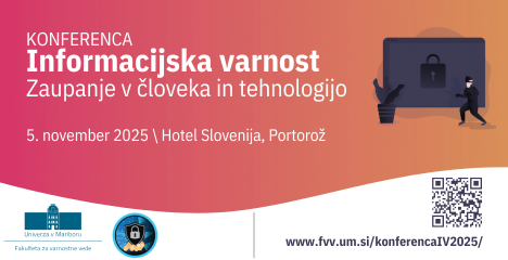 Konferenca »Informacijska varnost: Zaupanje v človeka in tehnologijo« 2025 bo potekala 5. novembra v kongresnem centru hotela Slovenija v Portorožu. Poleg glavnega programa konference bodo udeleženci imeli tudi priložnost za mreženje in medsebojno izmenjavo izkušenj.