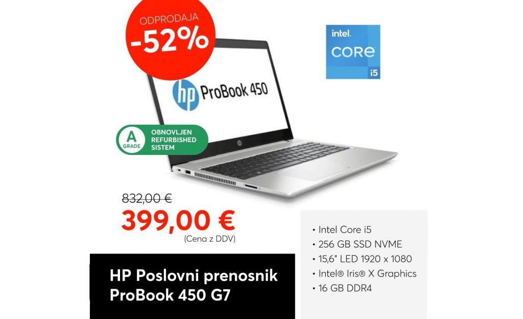 OBNOVLJEN prenosnik HP ProBook 450 G7 – IZKLICNA CENA 1 €!