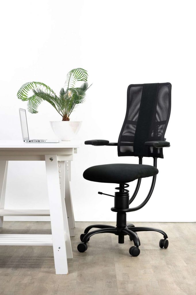 Pisarniški stol SpinaliS Hacker ima gibljiv, po višini nastavljiv sedež. Zaradi aktivnega sedenja in ohranjanja telesa v ravnotežju ne prihaja do nepravilnih položajev hrbtenice, kot je to pogosto pri pisarniških stolih s fiksnim sedežem. Naslon za hrbet posnema obliko hrbtenične krivine in sledi vašemu gibanju. Naslonjalo in ročki za roke so nastavljivi po višini. Naslon je iz zračno prepustne mreže, ki preprečuje znojenje. Za dodatno podporo hrbtenici je dodan na otip prijeten bombažno oblazinjen element z videzom usnja. Ravno zato je pisarniški stol Hacker naš najbolje prodajen model.