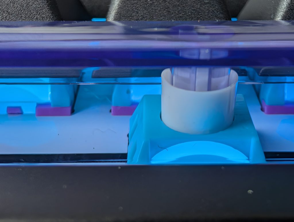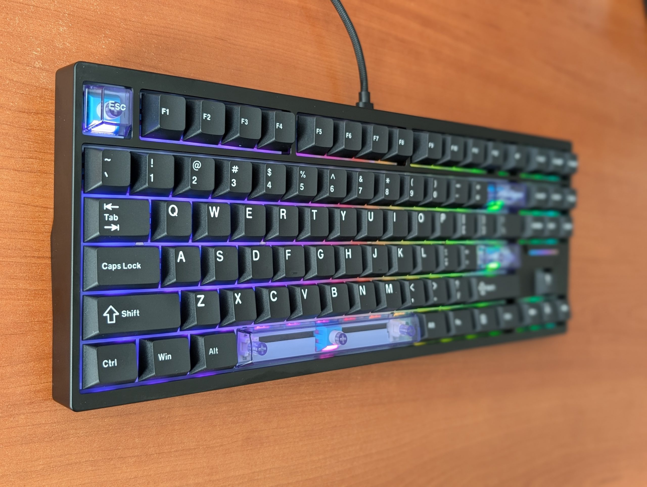 Namesto klasičnih mehanskih stikal uporablja nova Kailh Box Inductive stikala, ki so sorodna tehnologiji Hall Effect. Razlika je v tem, da tipka ne sproži signala s fizičnim kontaktom, temveč z zaznavanjem magnetnega polja. To pomeni manj obrabe, bolj gladek hod in predvsem možnost natančne nastavitve točke proženja. Med pisanjem se to pozna kot enakomerno mehko gibanje brez praskanja, pri igrah pa pride prav odzivnost, ki jo lahko prilagodiš glede na lastne preference.