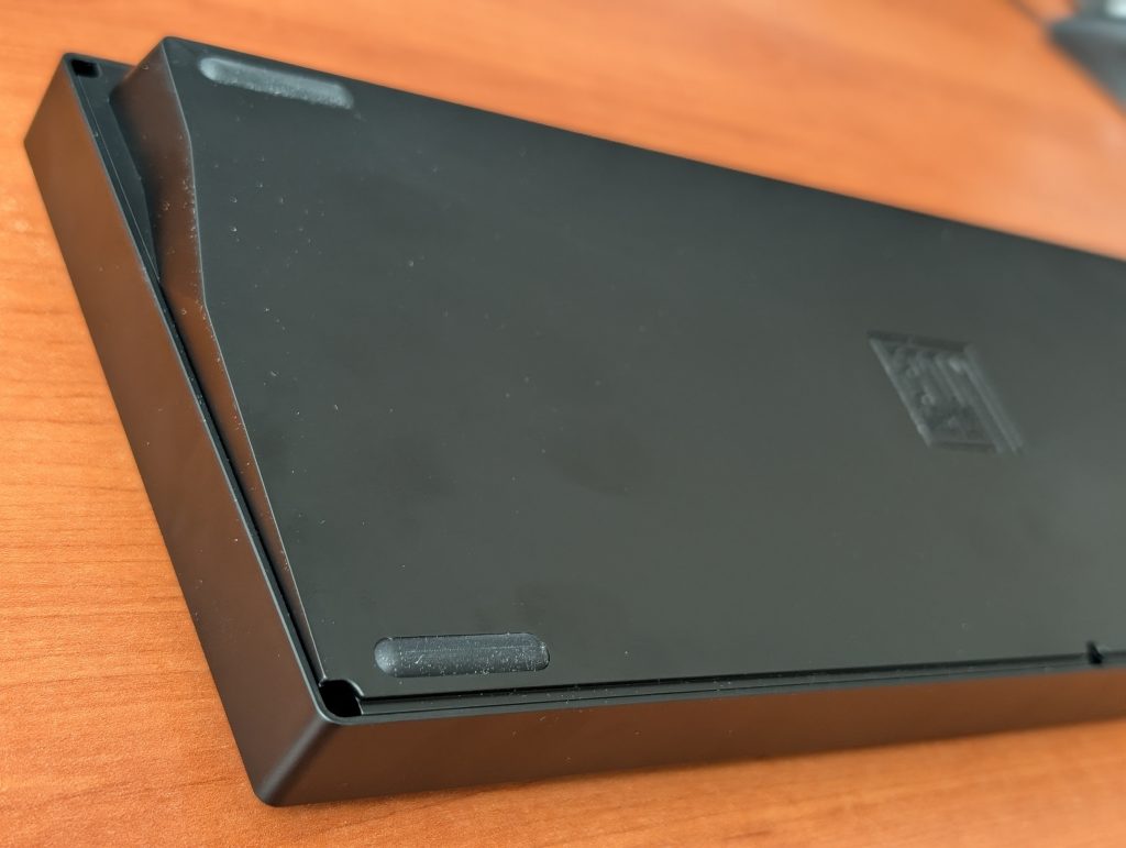 Pri skoraj dveh kilogramih to tudi ni kos periferije, ki bi ga kar tako prenašal naokrog. A kot rečeno – na mizi stoji kot pribita. K temu pripomorejo tudi štirje gumijasti dodatki na spodnjem delu tipkovnice.