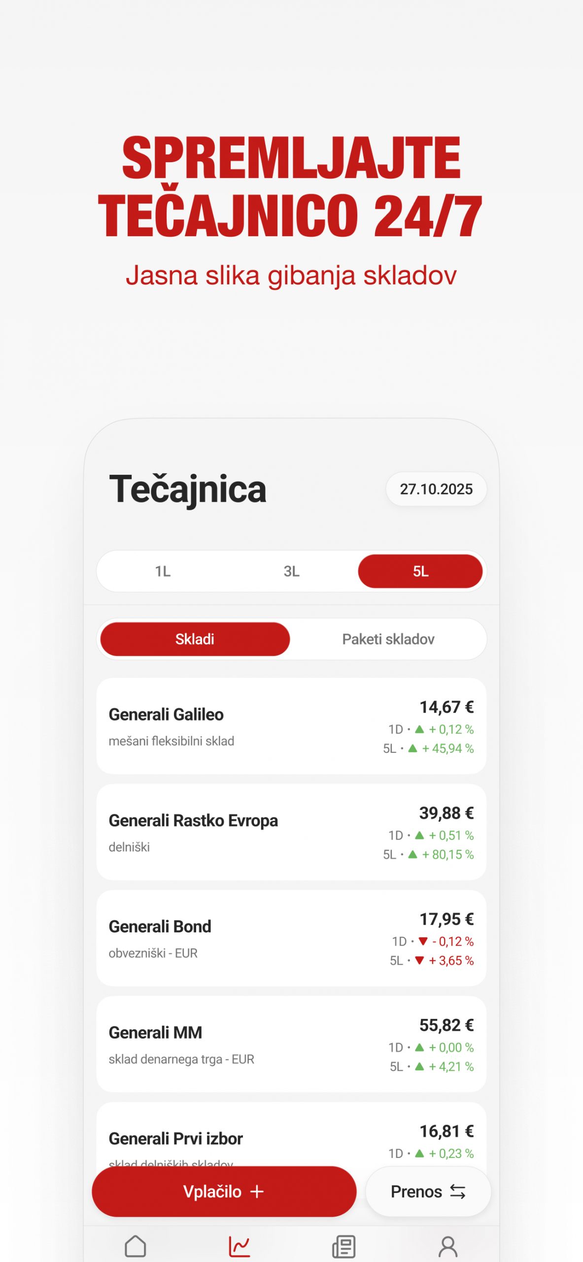 • spremljanje vrednosti naložb in gibanje skladov na interaktiven način,