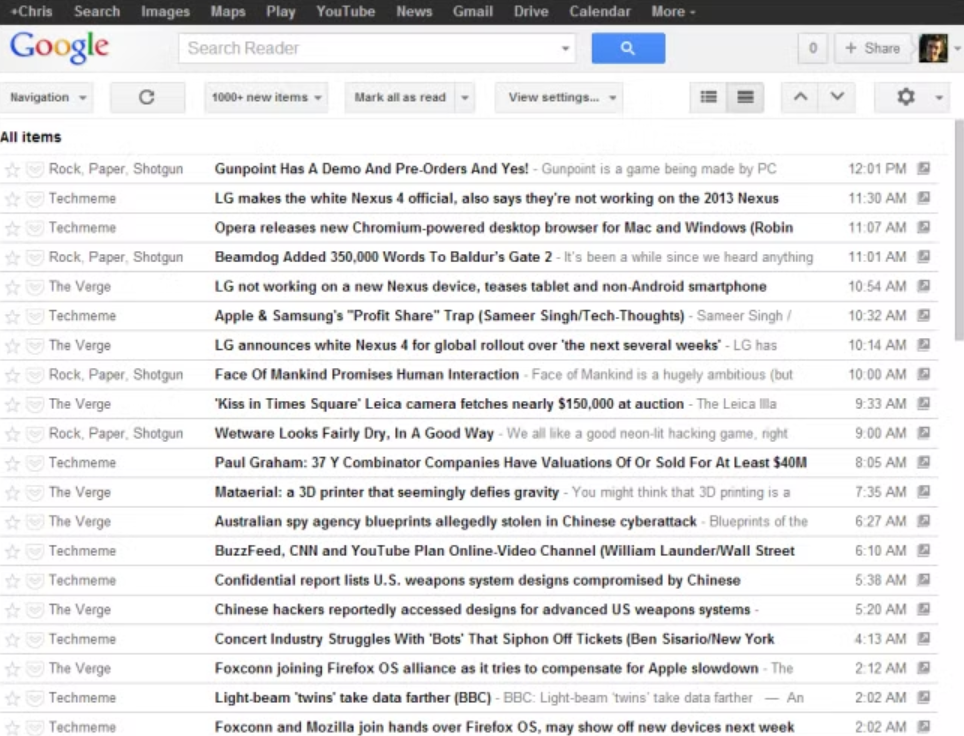 Novice so prihajale v kronološkem vrstnem redu, brez »personaliziranih« algoritmov, in ravno zato je bil Reader orodje moči za novinarje, blogerje in resne bralce.