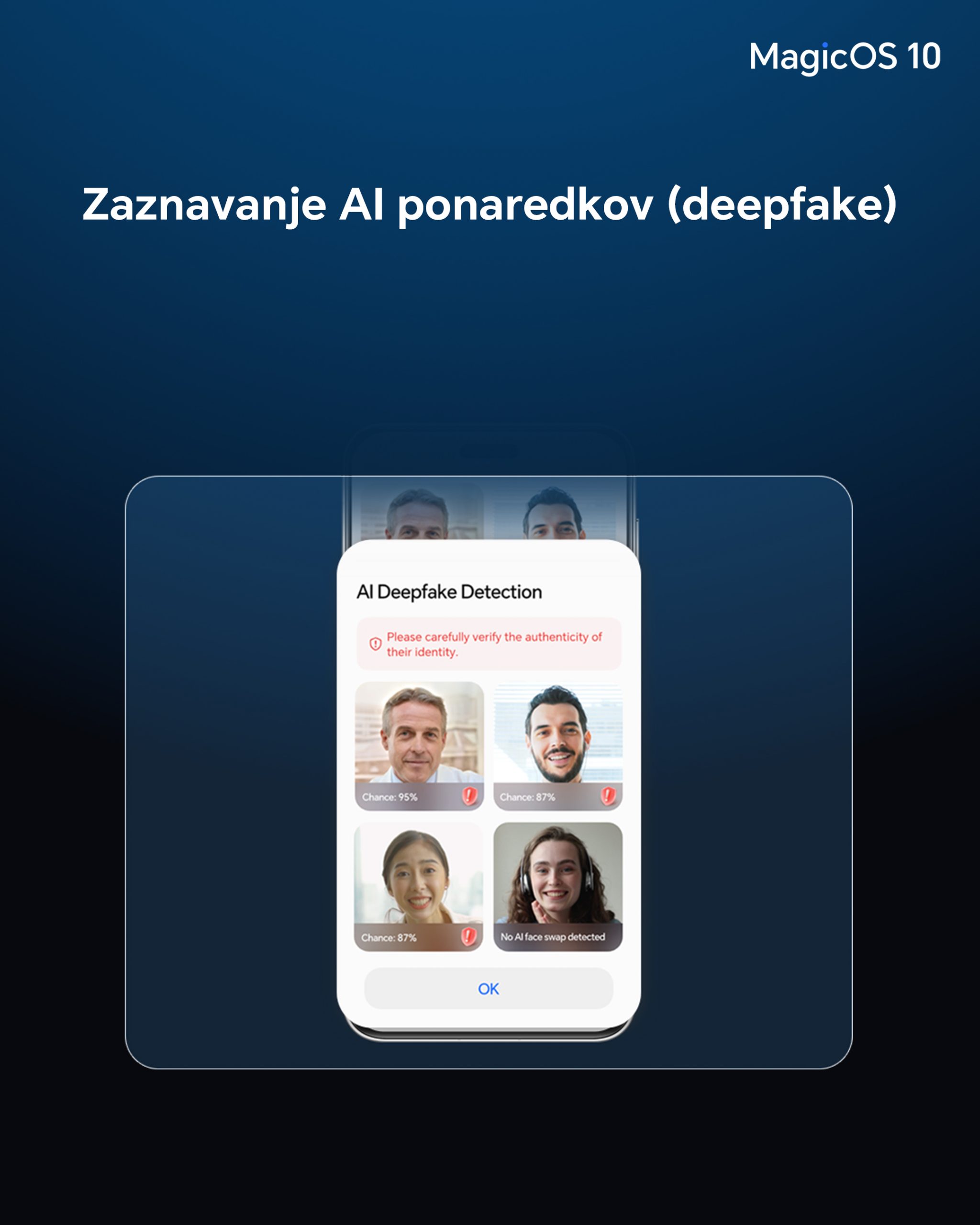 MagicOS 10 predstavlja tudi funkcijo lajšanja potovalne slabosti, ki se samodejno aktivira med vožnjo, da zmanjša vizualno nelagodje in podpira udobnejšo uporabo naprave na poti. Na področju varnosti AI Deepfake detekcija uporablja inteligentno analizo za prepoznavanje potencialno manipuliranih medijev in zaščito uporabnikov med video sestanki ali deljenjem vsebin. Za zvok MagicOS 10 dodaja podporo za visokoločljivostne formate Bluetooth, ki zagotavljajo polnejši zvok, ko so združeni z združljivimi slušalkami.