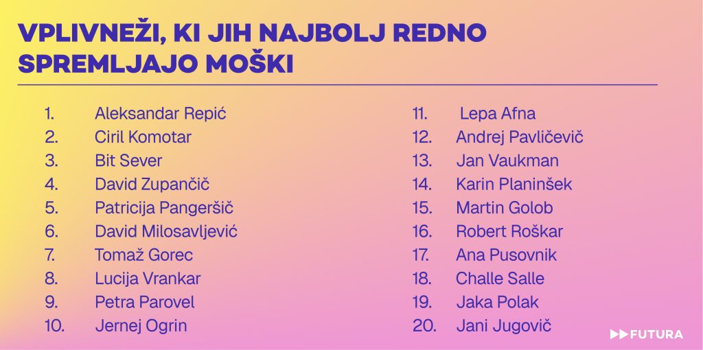 Iz množice imen je izstopila dvajseterica vplivnežev, ki je najbolj zaznamovala slovenski digitalni prostor. To so: