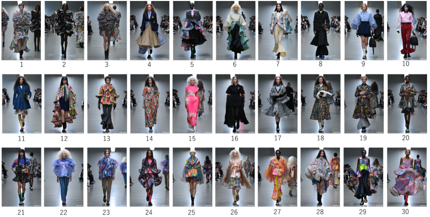 P.S.: Tkanine, potiskane s tiskalnikom FOREARTH, so bile uporabljene pri kreacijah št. 1–3, 5, 8–15 in 17–30 na sliki Zbirka kreacij.