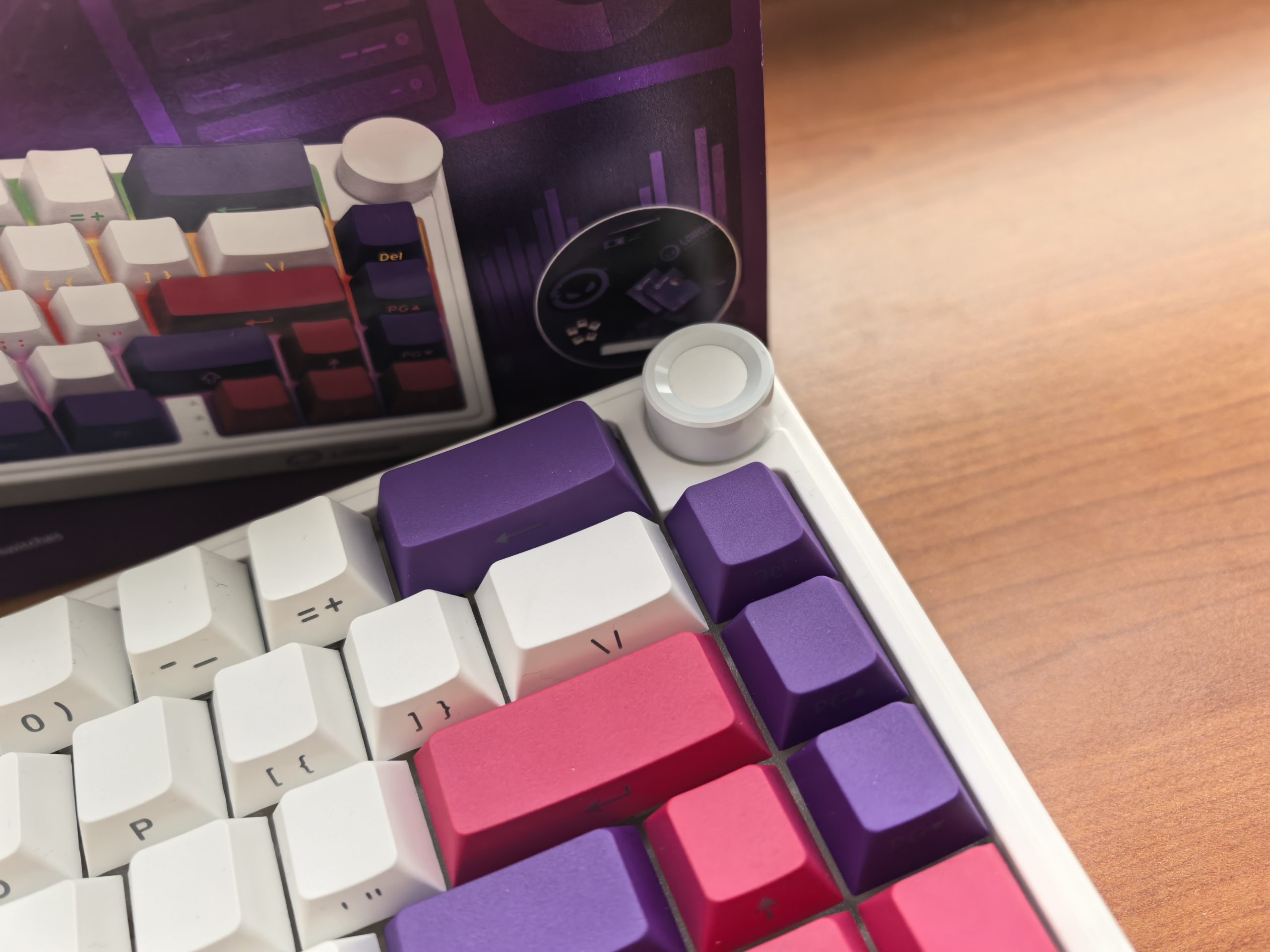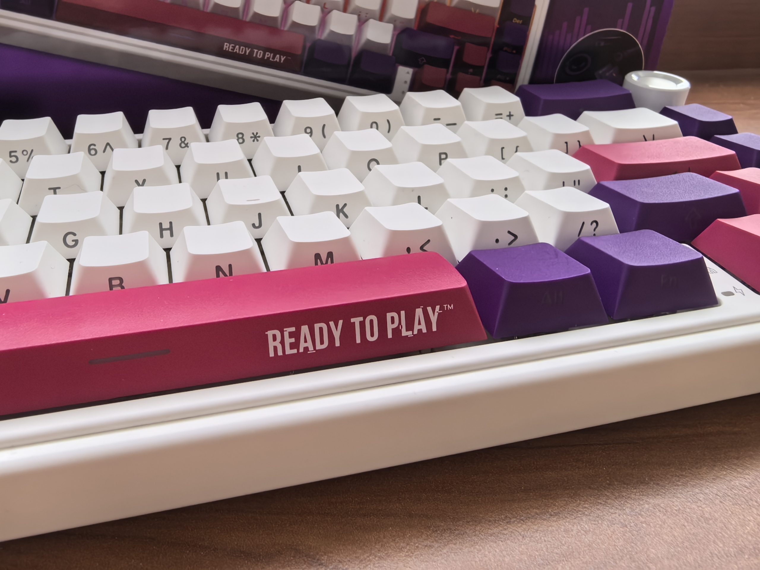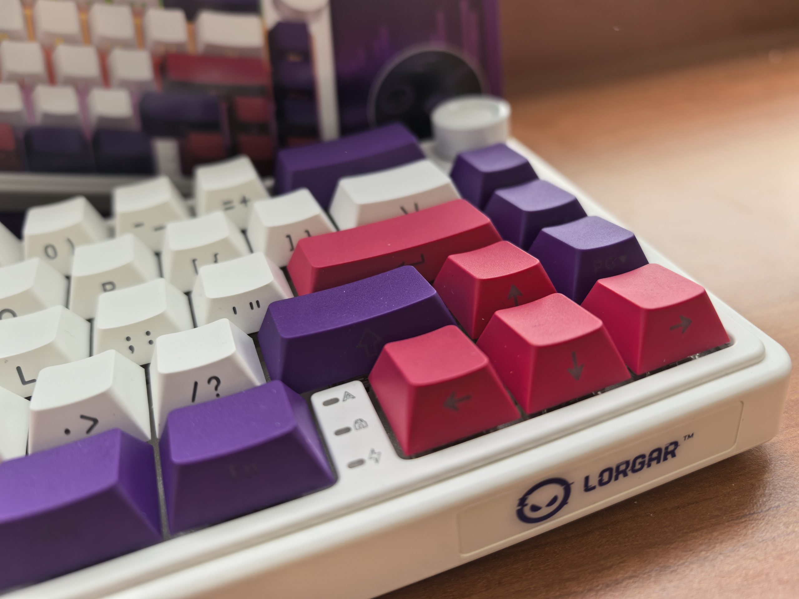 LORGAR™ KBP70MW na mizo prinese nekaj svežine, ki je v svetu gaming tipkovnic pogosto manjka. Namesto klasične črne plastike so se pri tem modelu poigrali z barvami. Kombinacija roza, vijolične in bele deluje živahno, a ne pretirano kričeče. Tipkovnica izstopa, a hkrati ostane elegantna, kot kos strojne opreme, ki ga lahko brez težav uporabljaš tudi v bolj umirjenem okolju. Ta barvna shema doda tisti »piko na i« občutek, zaradi katerega dobiš vtis, da pred sabo nimaš le orodja, ampak tudi dekorativno opremo, ki nekaj pove o osebnem stilu.