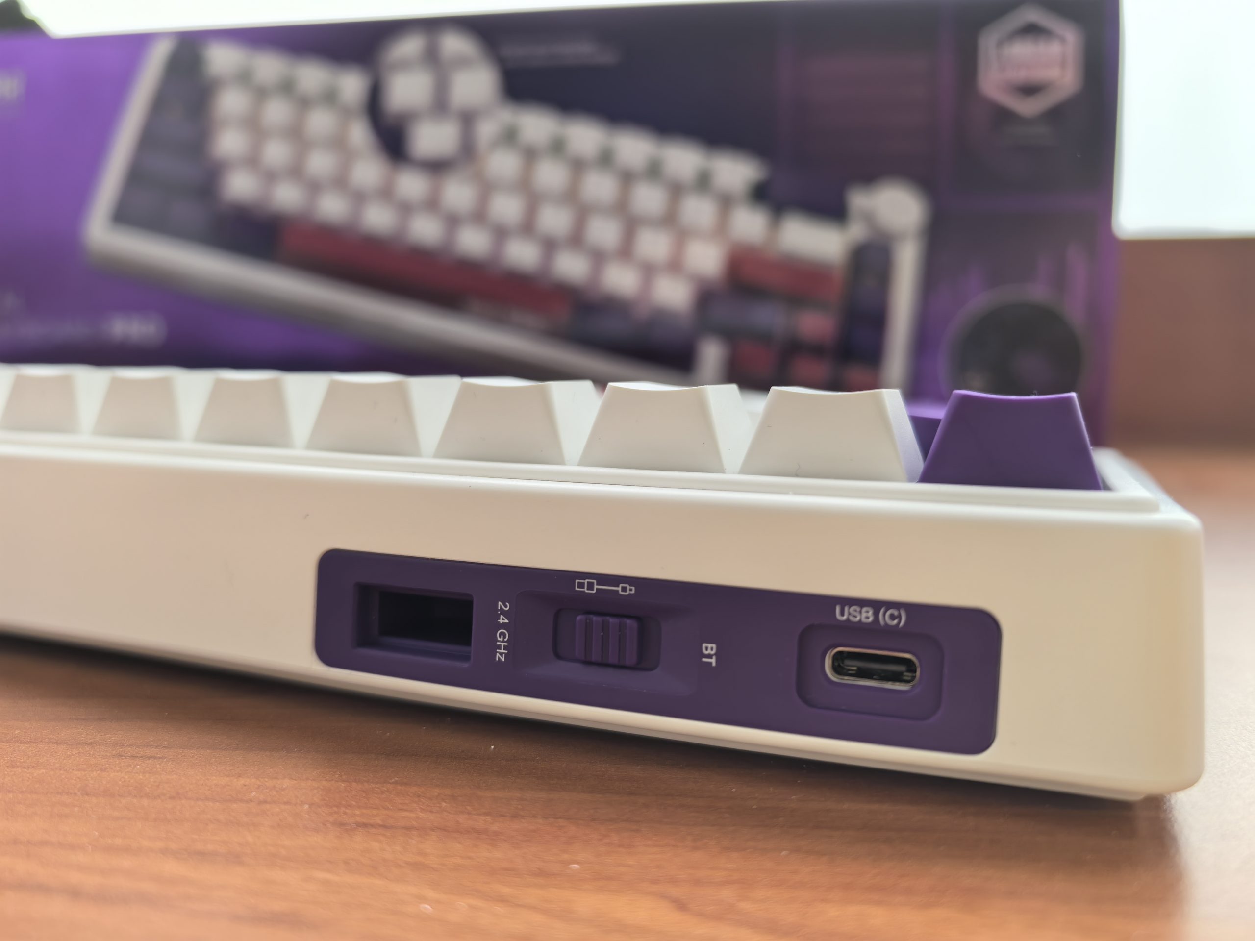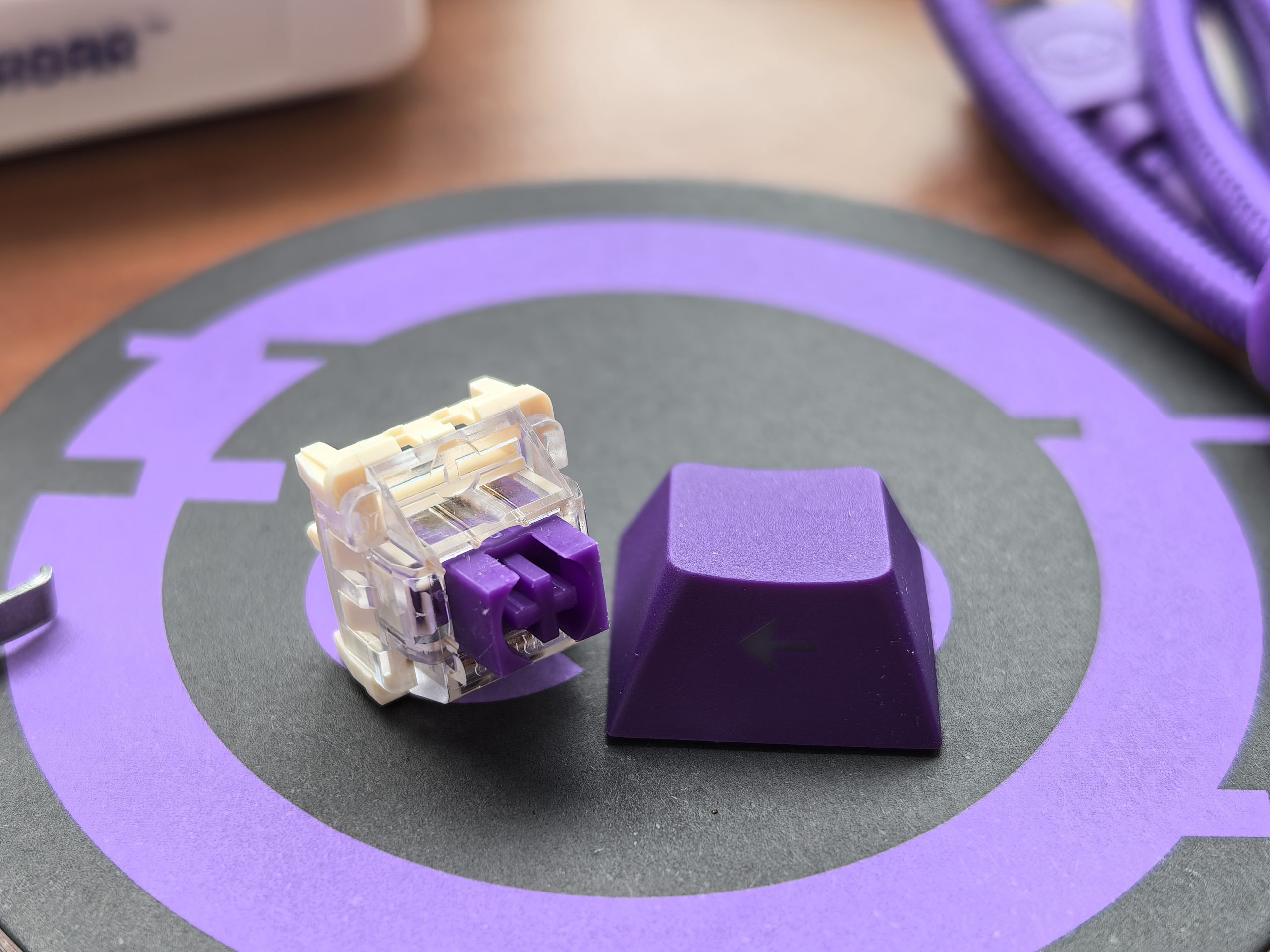 Pod tipkami se skrivajo mehanska stikala Toxic Purple, ki so linearna in gladka. Občutek ob tipkanju je zelo enakomeren, brez klikajočega zvoka, kar pomeni, da so tišja kot klasična modra stikala, a še vedno dovolj odzivna, da jih bo cenil vsak, ki igra hitre igre. Občutljivost je ravno pravšnja, hiter odziv, a ne tako občutljivo, da bi beležilo nenamerne pritiske.