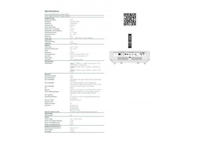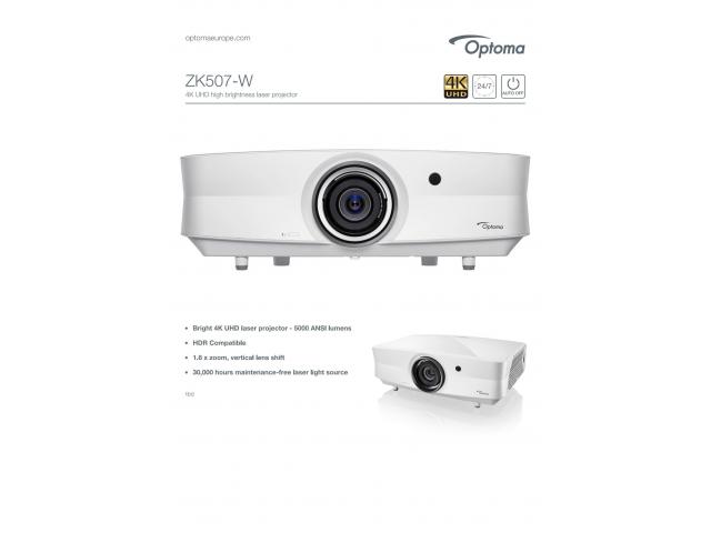 Na voljo je profesionalen projektor Optoma ZK507-W, ki je bil malo rabljen in je v odličnem stanju. Ta zmogljiv projektor ponuja neverjetno kakovost slike, s svetlostjo do 5.000 lumenov in ločljivostjo 4K UHD, kar ga naredi idealnega za poslovne predstavitve, učilnice ali domači kino. Z naprednimi funkcijami, kot so HDR in širok barvni spekter, zagotavlja izjemno natančnost barv in odlične detajle, tudi v svetlejših prostorih.