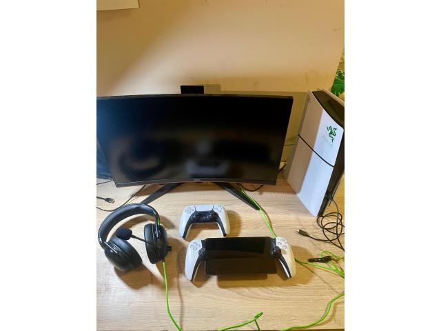 Monitor je uporabljan, a brez vidnih napak ekrana, deluje brezhibno. Konzola PS5 Slim prav tako deluje perfektno. Slušalke so bile skrbno hranjene, kontroler brez večjih znakov obrabe. PS Portal je bil redko uporabljen.