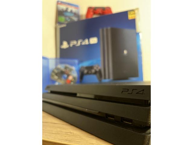 Prodajam PS4 Pro (1TB) v zelo dobrem stanju. Konzola deluje brezhibno, redno čiščena in nikoli ni imela težav z delovanjem ali ventilatorjem.