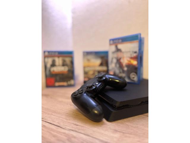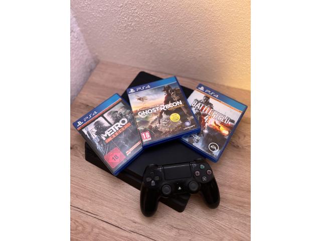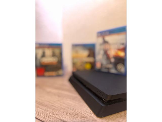 Prodajam lepo ohranjeno PS4 Slim (500 GB) konzolo z enim originalnim DualShock 4 kontrolerjem.