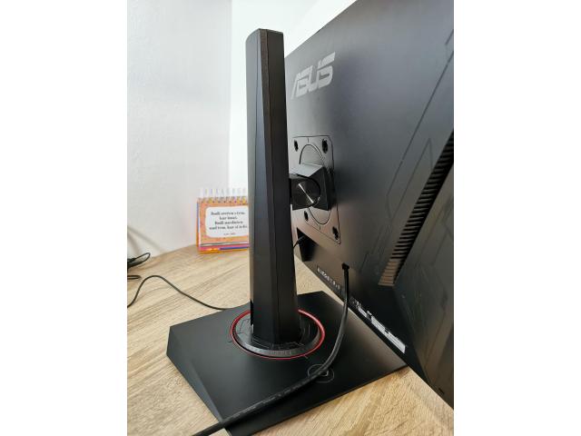 Prodam gaming monitor ASUS VG279Q, 27”, 144Hz, IPS zaslon. Monitor je odlično ohranjen in deluje brezhibno. Ima nastavljiv naklon, višino, vrtenje (pivot) in zasuk (swivel), kar omogoča popolno prilagoditev za udobno uporabo.