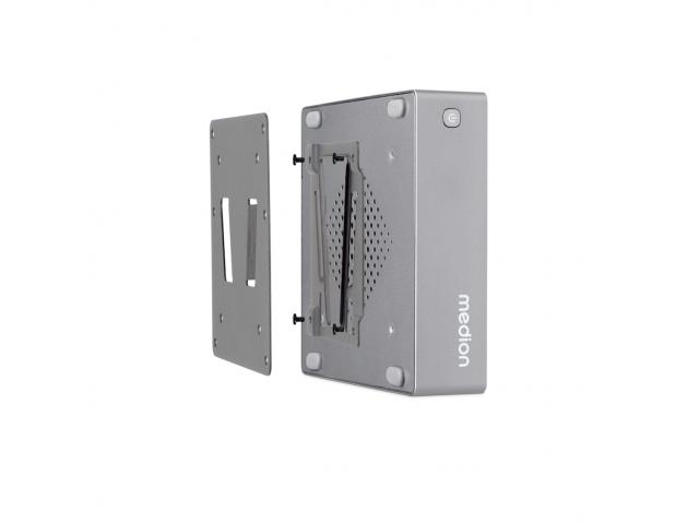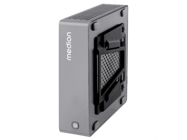 Odkrijte mini računalnik MEDION S06, pametno rešitev za vse, ki potrebujejo polno zmogljivost v kompaktni obliki. Z ultra kompaktnim ohišjem s prostornino 0,6 litra se prilega v vsako okolje – bodisi v pisarno, doma ali na poti. Zahvaljujoč praktičnemu nosilcu VESA lahko S06 enostavno pritrdite za monitor ali na steno. To sprosti prostor in ohranja vašo mizo urejeno.