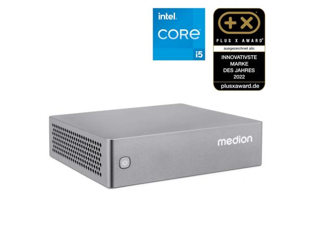 Mini računalnik Medion by Lenovo - Intel Core i5 13th gen - 16 GB DDR4 spomina - 1 TB SSD NVME - Microsoft Windows 11 PRO - LAN, WLAN, BLUETOOTH, USB, HDMI Mini računalnik MEDION S06 – majhen, zmogljiv, prilagodljiv Odkrijte mini računalnik MEDION S06, pametno rešitev za vse, ki potrebujejo polno zmogljivost v kompaktni obliki. Z ultra kompaktnim ohišjem s p...