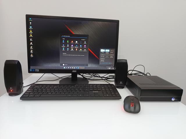 Na prodaj je popolnoma brezhiben in servisno očiščen mini PC v ITX formatu. Računalnik je tih, varčen in idealen za pisarniško delo, multimedijo, šolo .Vgrajene komponente so preverjene in delujejo brez napak. Ima operacijski sistem WIN 11 SLO in osnovni pisarniški programi . Mini Pc. je pripravljen za takojšnje delo, nameščeni so vsi potrebni gonilniki in posodobitve. Velikost PC-ja Š/D/V 190x195x60.
