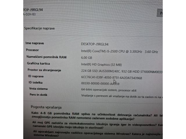 Prodam namizni racunalnik ker sem si kupil prenosni racunalnik. podatki od kiste so na sliki. Nalozen je win 10 kateri je aktiviran. Cena zanj je 80€ prodam tudi LCD 24" Acer star 2 leti cena 50€