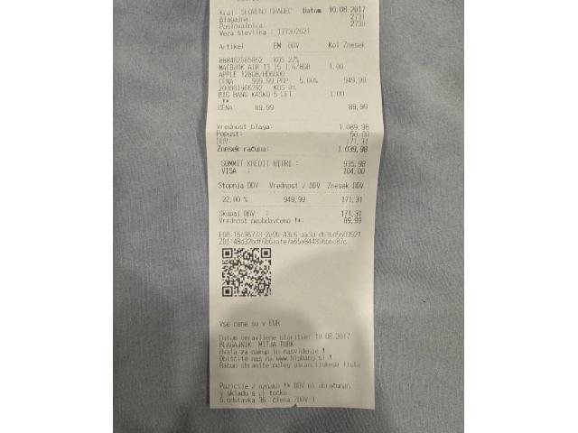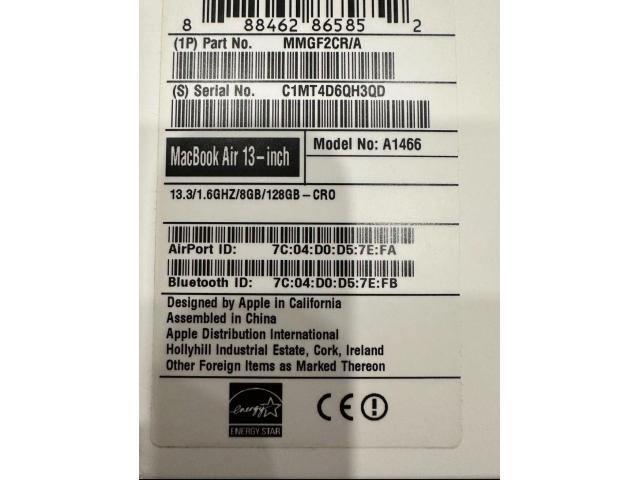 Prodam super ohranjen MACBOOK AIR 13 16 1.6/8GB APPLE 128GB/HD6000, kupljen leta 2017, brez poškodb deluje odlično. Zraven priložim vse original dodatke in škatlo ter torbo-kot je prikazano na slikah. Specifikacije računalnika in operacijskega sistema so na slikah.