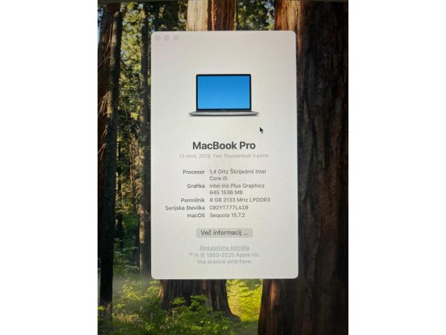 Prodam MacBook Pro 13” (2019), zelo lepo ohranjen in popolnoma delujoč. Prenosnik je bil normalno uporabljen, brez poškodb.