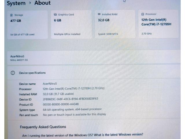 Prodam ASUS ROG GL753V prenosnik. Ima 17,3 palčni IPS zaslon, i7-7700HQ procesor, 16GB DDR4 RAMM, 256GB M.2 DISK in 1000GB HDD. Baterija v odličnem stanju, ker je bil večino časa priključen na kabel. Prenosnik je zelo dobro ohranjen, na novo naložen windows 11 SLO. Po dogovoru se še lahko naložijo ostali programi ( office... ). Je v originalni embalaži in vs...