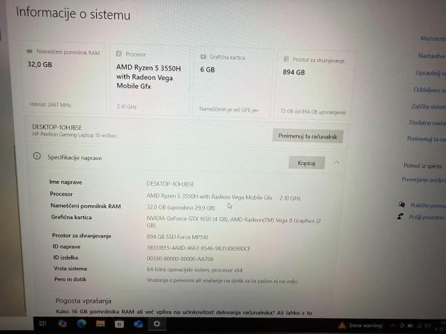 Računalnik ima 2 grafični kartici. Za igre uporablja GTX1650.