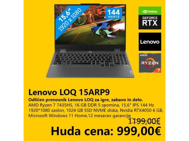Prodam popolnoma nov računalnik z računom kupljen v tujini. Dodatno ima naložene licenčne office ter antivirusni program. Za bonus naložim dve igre od iger GTA V, Red Dead Redemtion 2, Call of duty, Fifa, Forza Horizon, Assasin creed ... AMD Ryzen 5 7535HS/16GB RAM/512GB SSD/RTX 4050/RGB tipkovnica/144Hz monitor, Model Name: FA607NU-BS53-CB Operating System:...