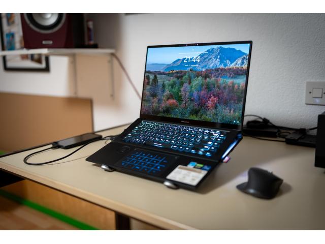 Prenosnik ima odličen tovarniško kalibriran OLED zaslon s 100% pokritostjo DCI-P3 in RGB, Harman Kardon zvočnike, velik touchpad s feedbackom in "kolescem" za spreminjanje raznih nastavitev v multimedijskih programih Adobe in ostalih.