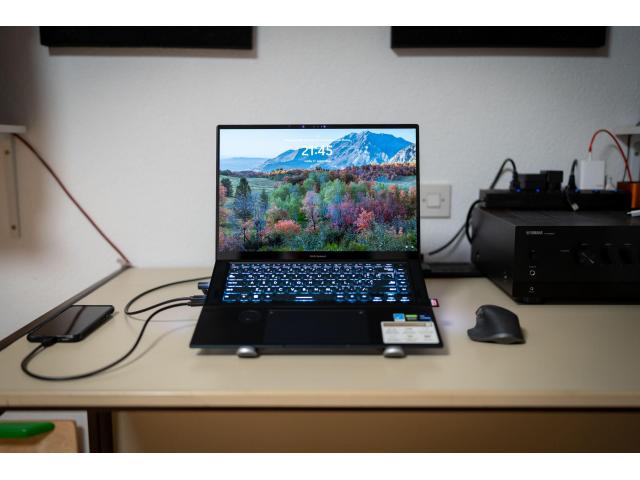 Prenosnik je bil kupljen v Harvey Norman in ima garancijo do aprila 2026. Je res odlično ohranjen, brez znakov uporabe, saj je bil večino časa na pisalni mizi na prevzdignjenem stojalu za boljši, bolj ergonomski pogled na ekran, boljše hlajenje ter posledično manj vnosa prahu v reže. Uporabljal sem ga za editiranje 4K videa v Adobe Premiere Pro ter obdelovanja fotografij z Adobe Lightroom.