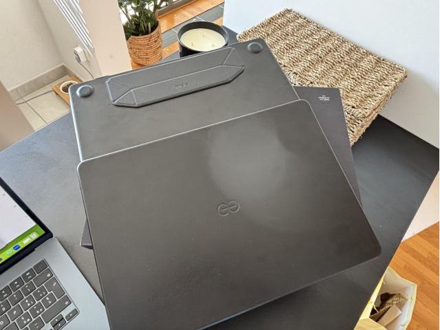 - usnjen ovitek črne barve z vgrajenim stojalom
