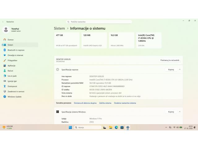 Prodajam KOT NOV (odprta embalaža) zanesljiv in lahek Lenovo Thinkpad.