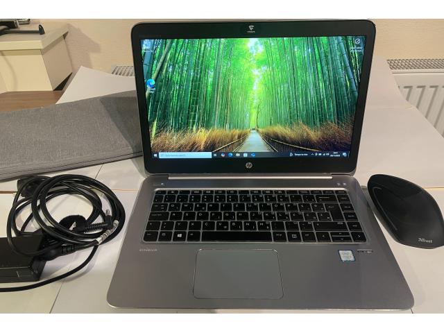 Brezhibno delujoč prenosni računalnik HP EliteBook Folio 1040 G3 z novo baterijo (zamenjana junija 2025) v kompletu z ergonomsko miško znamke Trust, torbico in polnilcem.