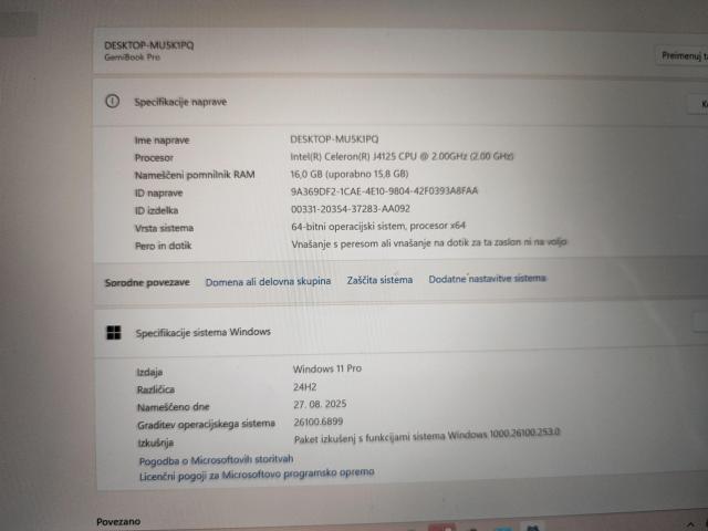 Prenosni računalnik HP 250 G7 s polnilcem, zraven podarim še torbo in brezžično ergonomsko miško znamke Trust. -Procesor: Inter(R) Core(TM) i5-8265U CPU @1.60GHz (1.80 GHz) -8GB RAM (lahko nadgradim na 16 GB za 10 €) -256 GB SSD -Original Windows 11 Pro -Grafična kartica NVIDIA GeForce MX110 Računalnik deluje odlično, baterija je pa slaba, tako da mora biti ...