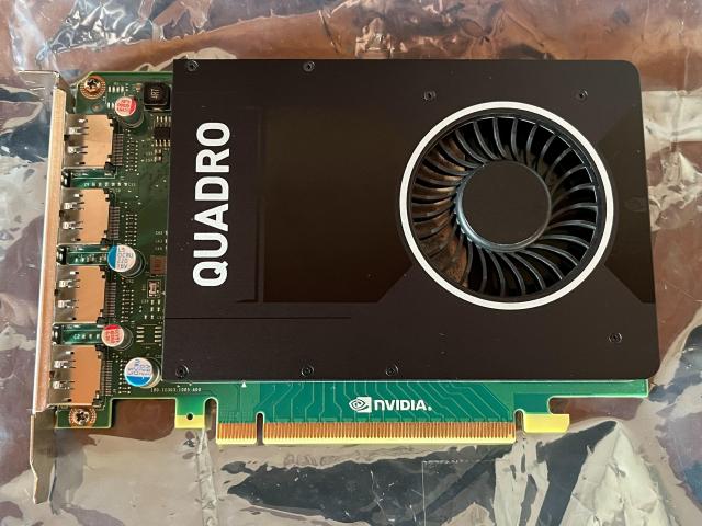Prodajam Nvidia Quadro M2000, 4GB, 4x DisplayPort 1.4, do 75W, torej ne potrebuje dodatnega napajanja.