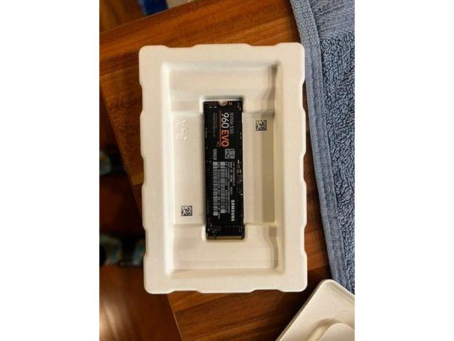 Samsung 960 EVO 500GB NVMe M.2, hitrost branja do 3200 MB/s in pisanja do 1800 MB/s. Disk je imel 22,2 TB zapisanih podatkov, Samsung Magician ga ocenjuje kot Good.