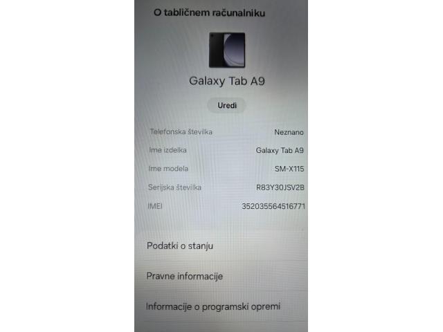 Prodam malo rabljeno tablico Samsung Galaxy Tab A9 LTE (X115), 64 GB, LTE, grafitne barve.