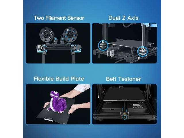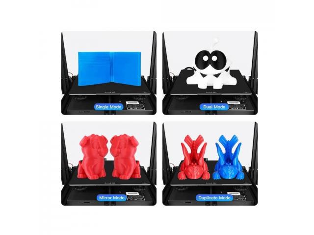 Sovol SV04 IDEX 3D tiskalnik je opremljen z dvema neodvisnima kovinskima ekstruderjema (IDEX) in z dvojnim direktnim pogonom, ki vam omogočajo tiskanje dveh različnih barv, dveh različnih materialov ali pa dveh modelov hkrati. SV04 IDEX podpira 3D tiskanje materialo, kot so PLA, ABS, PETG, TPU, ...