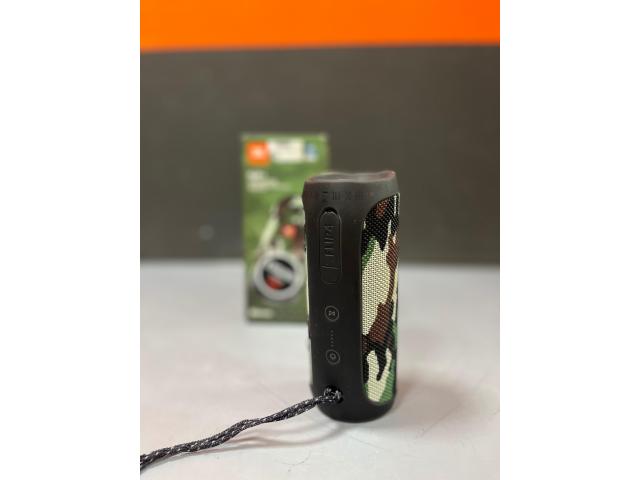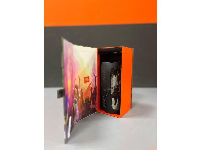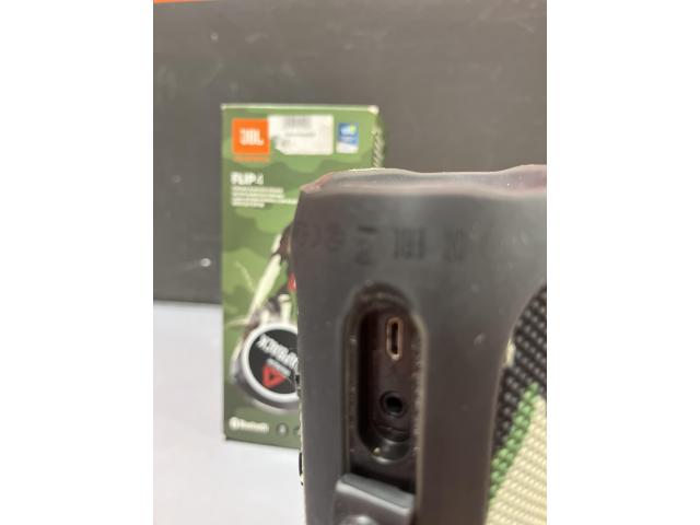 Prenosni Bluetooth zvočnik z močnim zvokom za svojo velikost. Deluje brezhibno, baterija normalno drži, vsi gumbi in priključki delujejo. Zraven je tudi originalna embalaža.