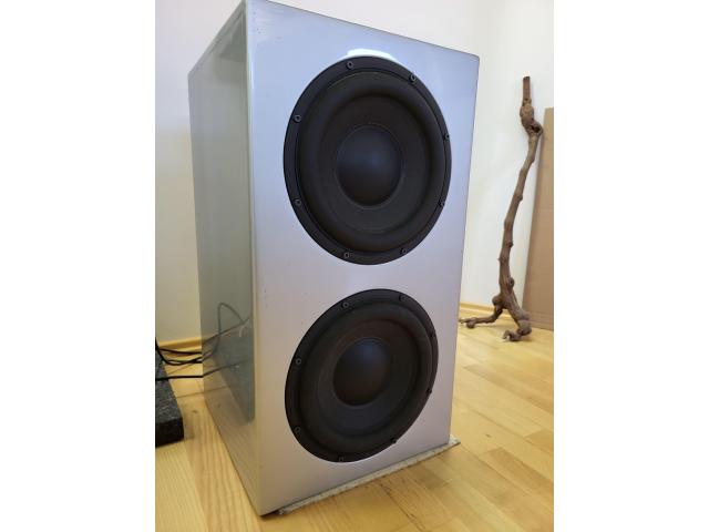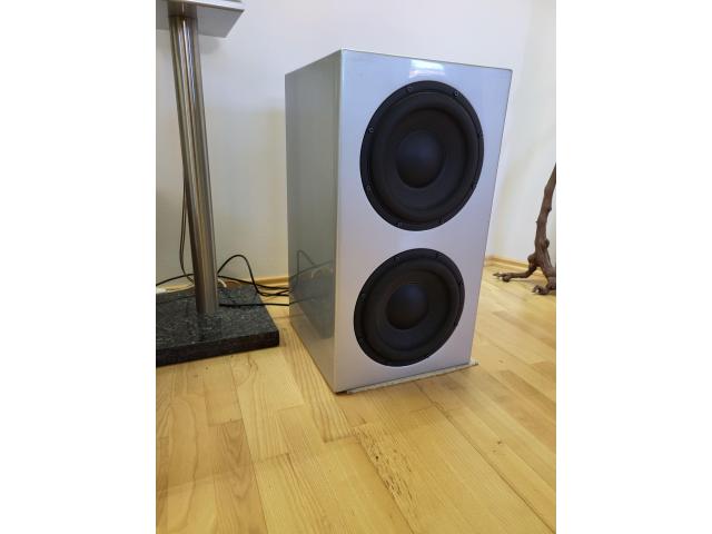 Bass zvočnik oz. aktivni woofer ima aktivno membrano Peerless 269 SWR 51 147 NX - moč 220W.