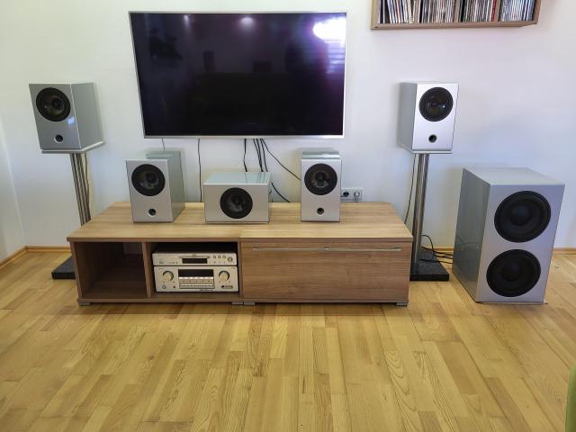 Prodam po meri izdelan vrhunski komplet zvočnikov 5+1 za domači kino ali uživanje v poslušanju glasbe.