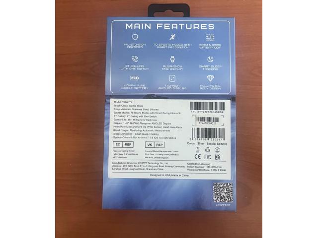 Prodajamo pametno uro Kospet Tank T2 Special Edition. Gre za pametno uro z robustnim, vojaško certificiranim ohišjem (MIL-STD-810H).