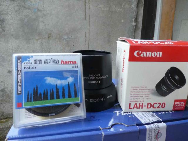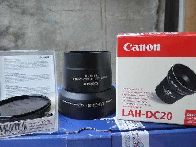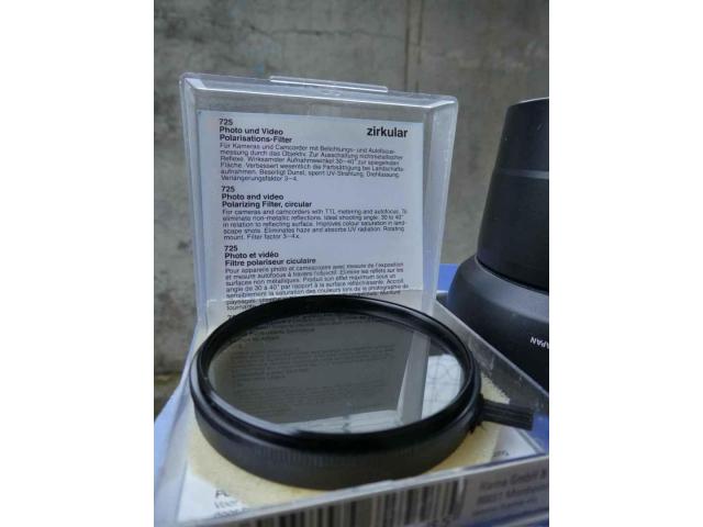 Dodatna oprema vključuje sončno zaslonko z adapterjem, ki preprečuje bleščanje in izboljšuje kontrast, ter polarizacijski filter, ki pomaga pri zmanjšanju odseva in povečuje barvno nasičenost. Torbica za shranjevanje zagotavlja, da bo vaš fotoaparat vedno zaščiten in pripravljen na akcijo.