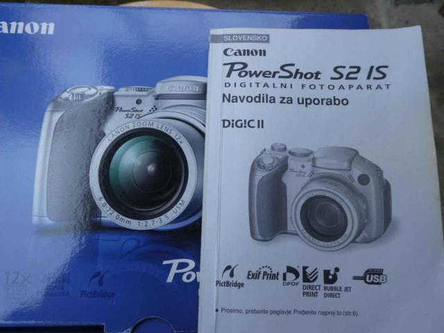 Prodam fotoaparat CANON S2 IS: tipalo 5.0 mega pikslov, zoom 12X, napajanje 4 baterije AA 1,5 V.