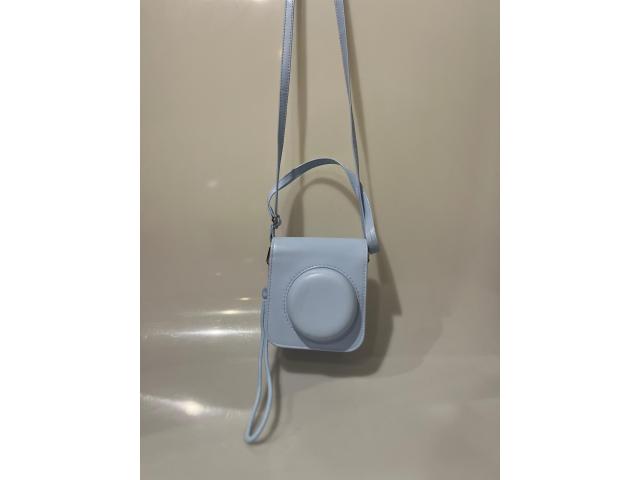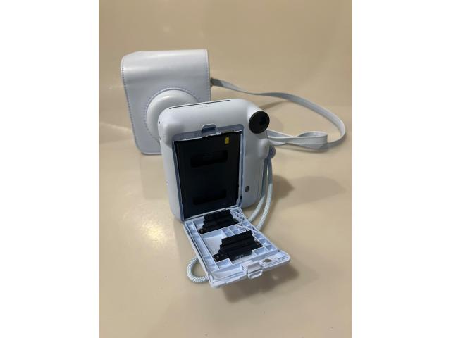 Uporablja Instax Mini film, ima vgrajeno bliskavico in selfie/close-up način. Priložena je tudi originalna torbica z naramnico.