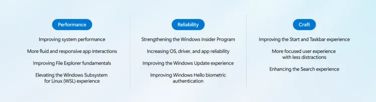 Začetni popravki so šele uvod v širšo prenovo, ki bo potekala skozi celotno leto. Microsoft se bo osredotočil predvsem na tri ključna področja: zmogljivost, zanesljivost in uporabniško izkušnjo.