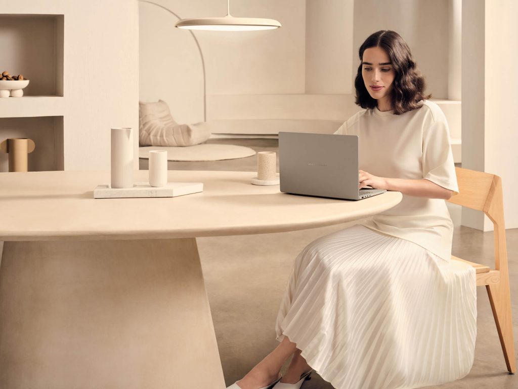 Vas motijo veliki in težki prenosni računalniki? Želite takega, ki ga boste med potovanjem komaj občutili v torbi ali nahrbtniku? S težo le 980 gramov in baterijo, ki ponuja neverjetno avtonomijo, ASUS Zenbook A14 (UX3407) predstavlja uresničitev sanj vseh, ki veliko časa preživijo zunaj doma in pisarne. Delo na zaslonu ASUS Lumina OLED z diagonalo 14 palcev in živimi barvami je pravi užitek. Srce računalnika je procesor Qualcomm Snapdragon X Elite. Ohišje je izdelano iz keraluminija, posebnega materiala, ki je trdnejši in bolj odporen proti obrabi kot klasična kovinska ohišja, prstni odtisi na njem pa so tudi manj vidni.